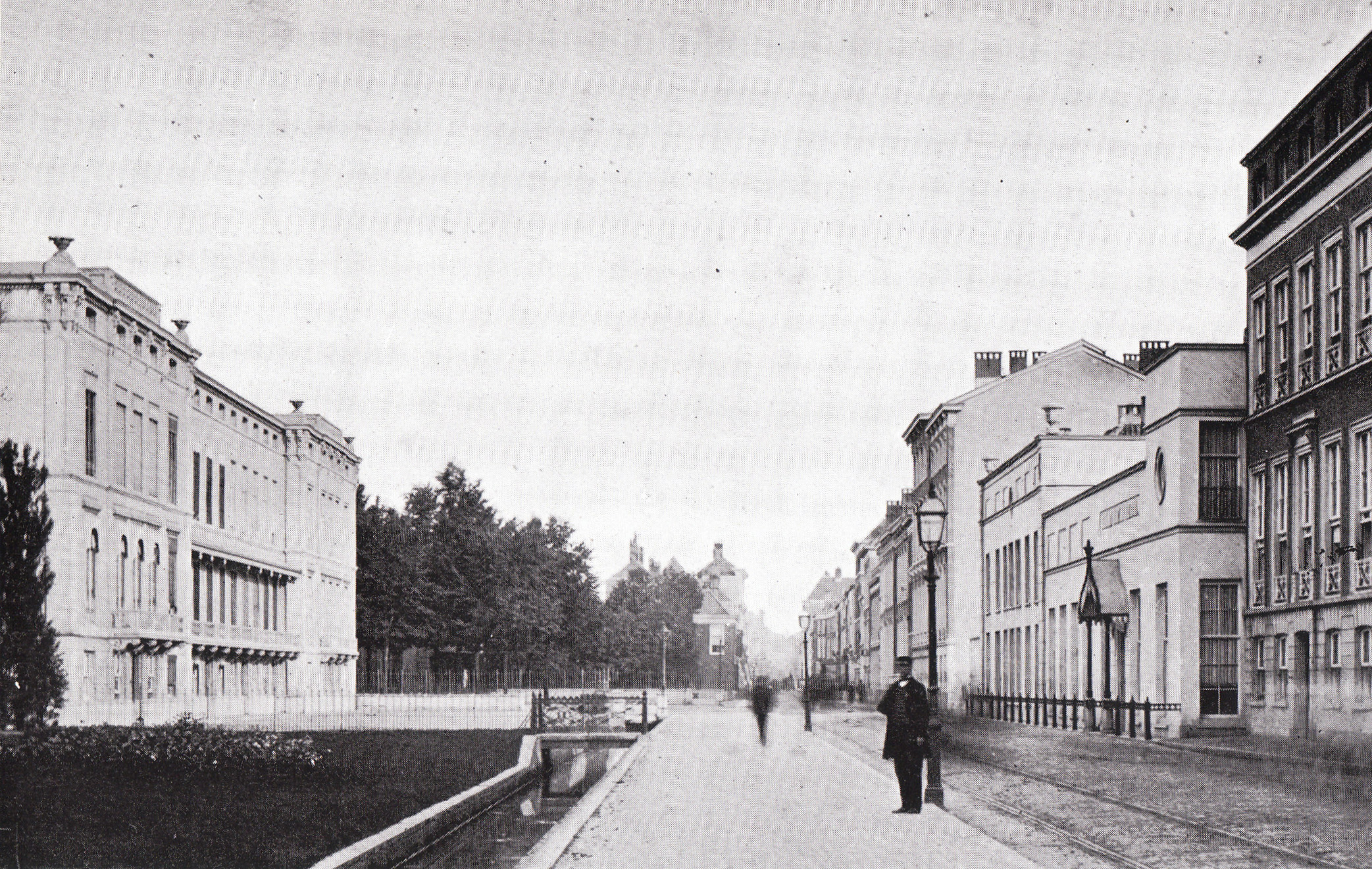 An impressive collection of paintings purchased by Willem II and originating from Brussels was housed here. With that park, onecontinuous green space was created from the Kneuterdijk to the Willemshof. Some streets were already partly built up, such as the Zeestraat, in the extension of the Noordeinde, which led to the village of Scheveningen. Where the Javastraat is now located, was atthe time a country road: the Laan van Schuddegeest, where the Alexanderveld was located with the barracks under construction inutilitarian architecture behind it. Here Hussars with horses were established, the cavalry that was part of the light cavalry. In 1875 the Third Regiment ’the Red Hussars’, later the ‘Court Regiment’ settled permanently in the Alexander barracks with 400 to 800 men andhorses. The Haagse Beek around the barracks was straightened and transformed into a system of canals and ditches. The architectwas Jhr. J.G.W. Merkes van Gendt, a colonel of engineers and aide-de-camp to Willem II. The barracks were demolished in 1971.