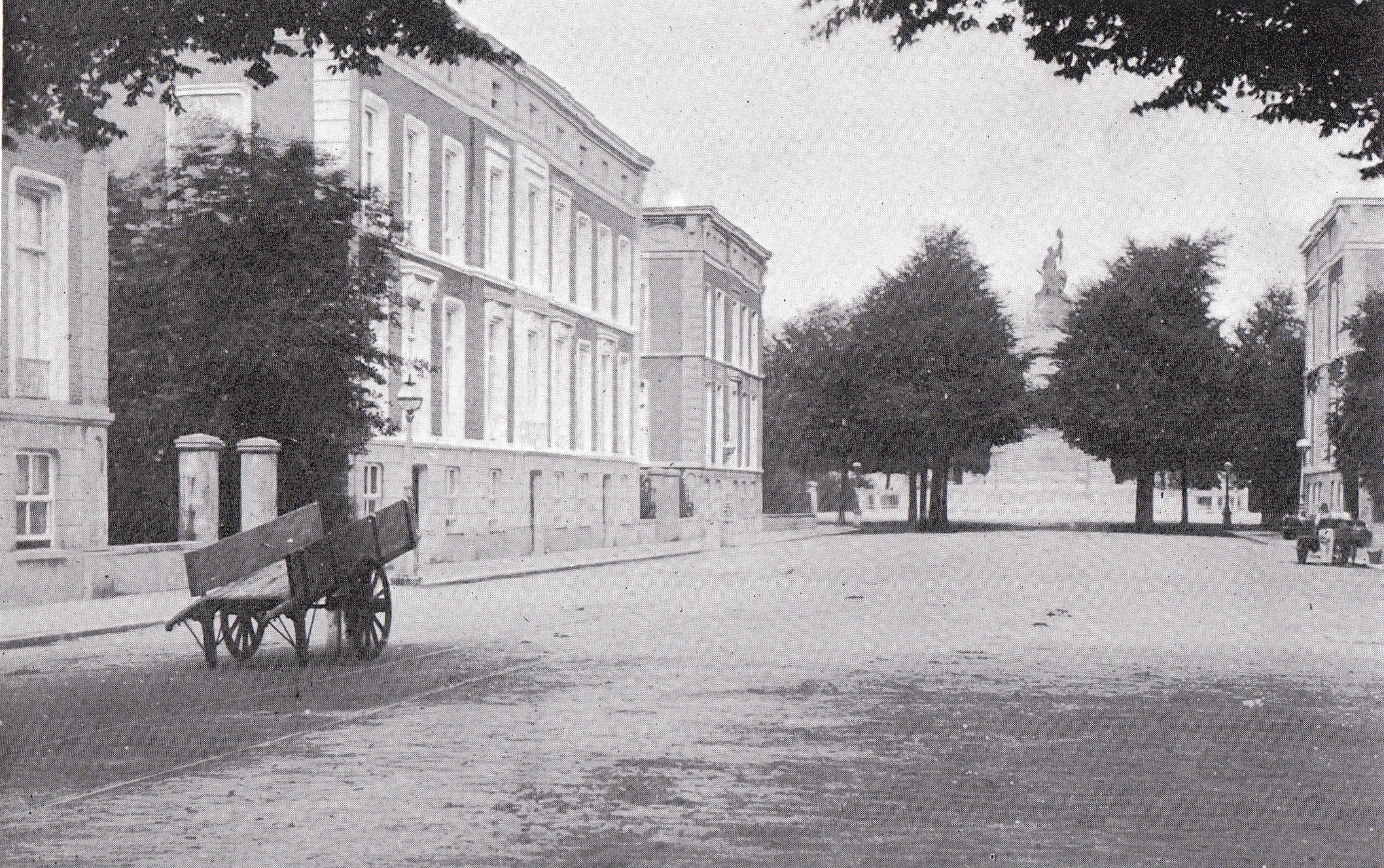 The walking and riding park under Willem II was an island, the residential park after Willem II was embedded in a larger urbanensemble. Streets that connected all the new houses. The Lange Voorhout was connected with the Parkstraat and Plein 1813 with theJavastraat and thus a true avenue was created. The Plein 1813 should become the shining center of the series of squares of the civicquarters that were explained in the period that followed. Elsewhere in the city, the laid out of Oranjeplein had ended in failure becauselandowners did not want to cooperate.